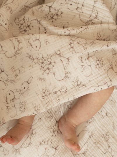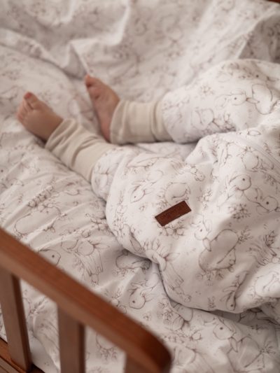 Muślinowe prześcieradło – wzór Króliczki na polanie
