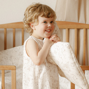 Kolekcja zaprojektowana z myślą o wyciszeniu i spokojnych drzemkach. Naturalne, bezpieczne tkaniny sprzyjają relaksowi i komfortowemu snu dziecka.