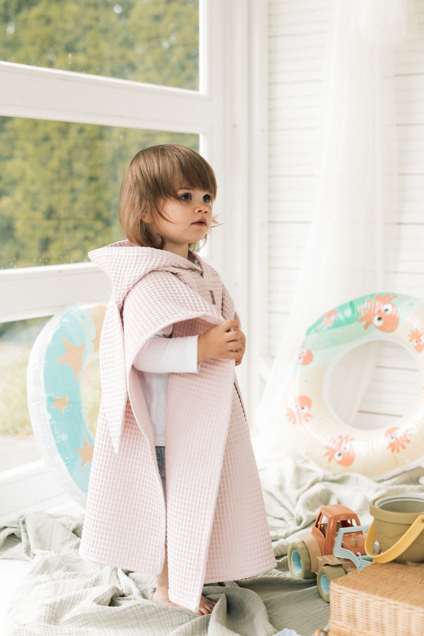 Ponczo kąpielowe – pudrowy róż