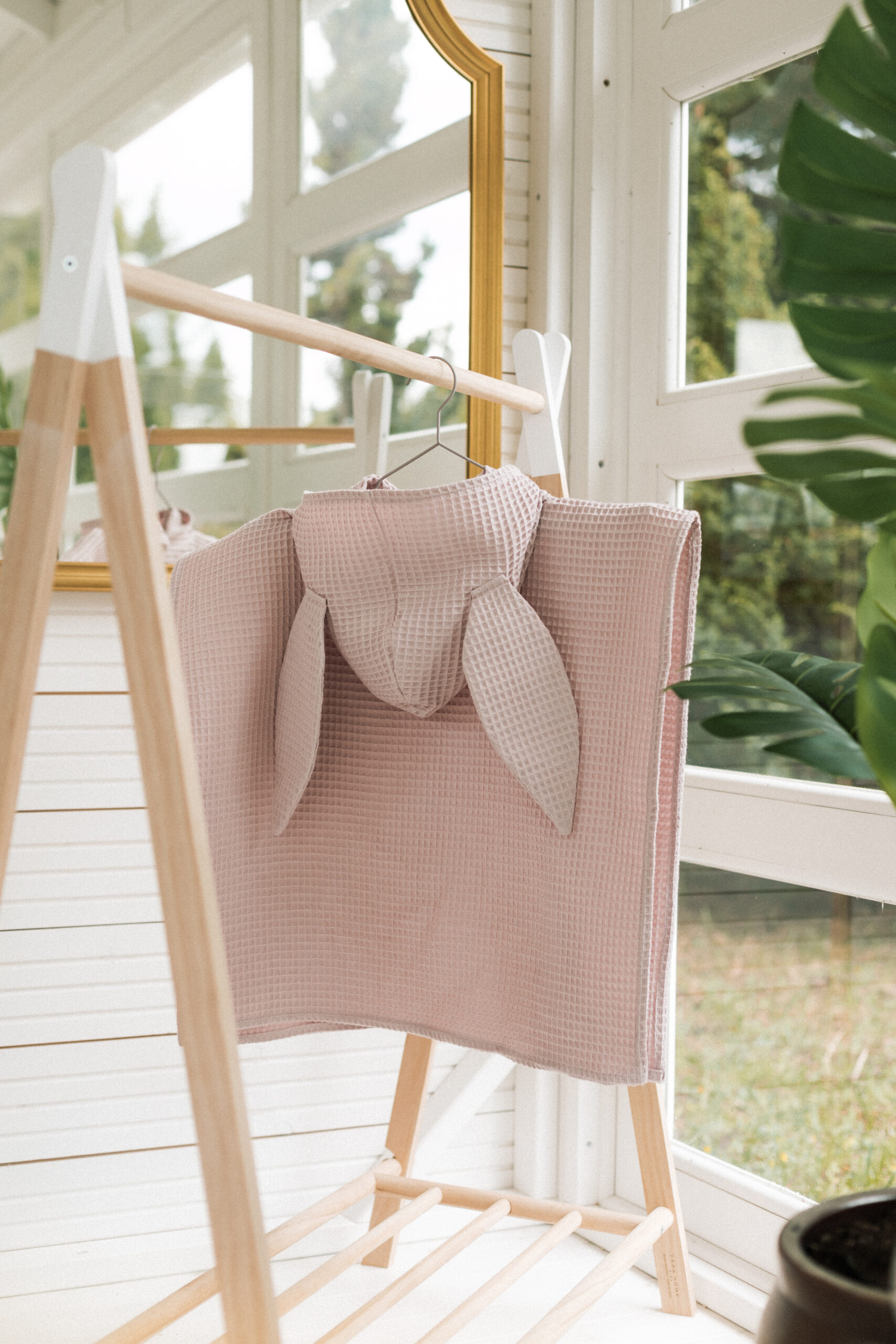 Ponczo kąpielowe to praktyczne rozwiązanie po wyjściu z wody! Na basen, plażę lub po codziennej kąpieli. Zaprojektowane z myślą o wygodzie i łatwym zakładaniu. Prosty, uniwersalny design wzbogacony o charakterystyczne dla naszej marki urocze uszka królika. Ponczo kąpielowe to idealny pomysł na oryginalny i praktyczny prezent dla dziecka. Uszyte z tkaniny wafel bawełniany, która z każdym praniem staje się coraz bardziej miękka, delikatnie się kurczy, ale zyskuje przy tym na grubości i delikatności. Świetnie chłonie wodę i zajmuje o wiele mniej miejsca niż zwykły ręcznik.