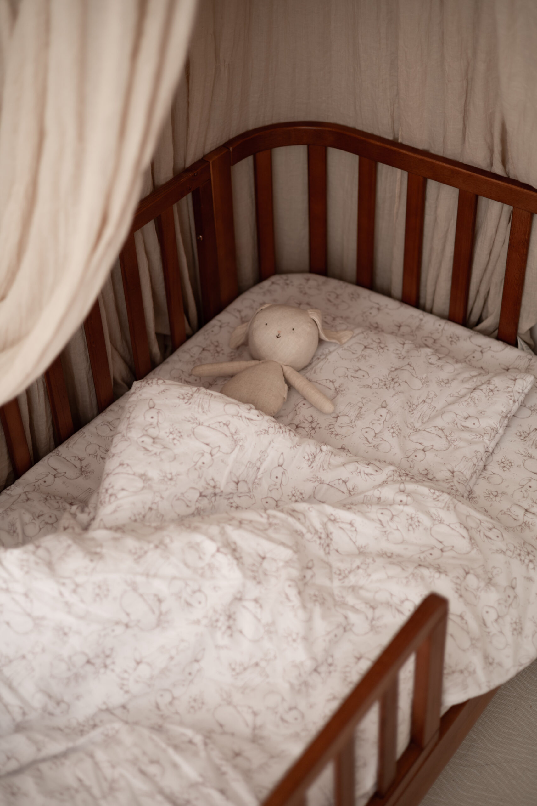 Prześcieradło do łóżeczka – wzór Króliczki na polanie
