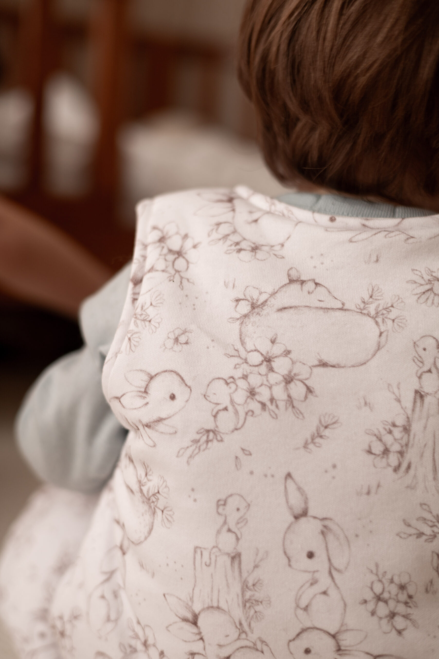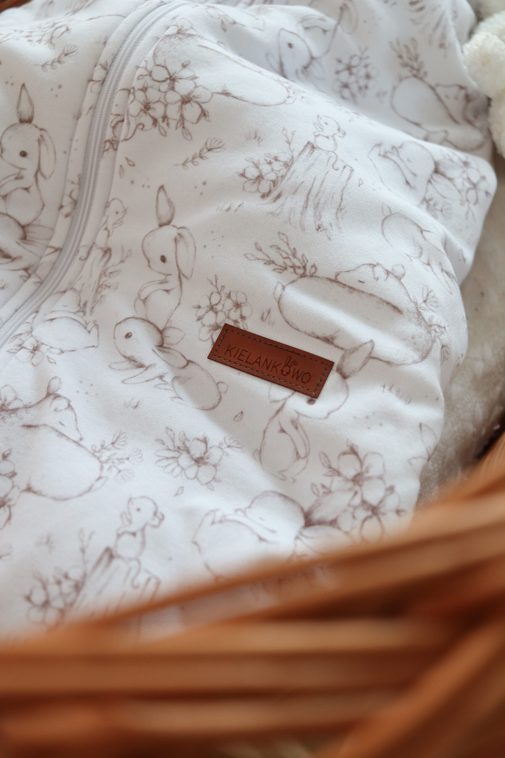 Śpiworek z nogawkami – wzór Króliczki na polanie