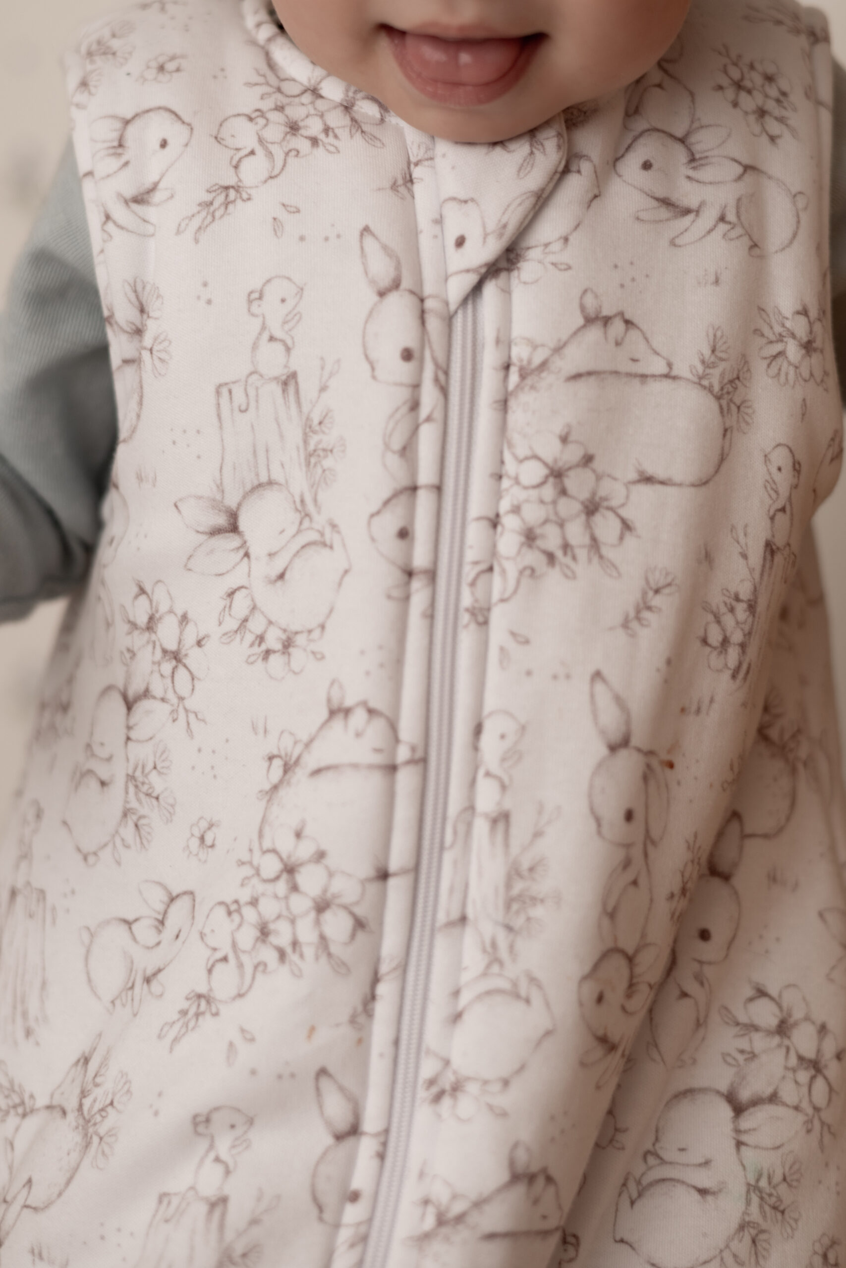 Strona główna / Produkty / Śpiworki do spania / Śpiworki z nogawkami / Śpiworek z nogawkami – wzór Króliczki na polanie